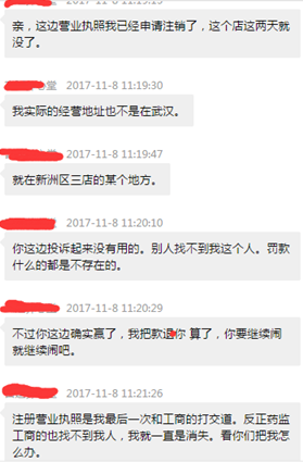 有職業(yè)打假人跟了某些假貨店一個(gè)多月之久,各種投訴材料、假貨證據(jù)都收集好了,但是店主卻忽然跑路了,還對(duì)職業(yè)打假人發(fā)來(lái)一堆冷嘲熱諷的信息。